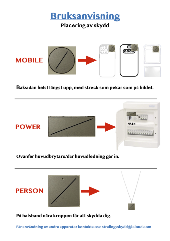 MENTALA/EMOTIONELLA STÖRNINGAR ELIMINERAS MED VÅR STRÅLNINGSSKYDD. Texten är direkt översatt från tyska.
